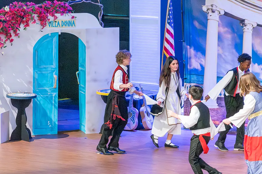 Then came the middle schoolers, who brought down the house with a theatrical production of “Mama Mia,”which included songs in Greek. The choice was deliberate and effective: a globally recognized pop musical reinterpreted through the Greek language, landing somewhere between cultural pride and sheer fun.