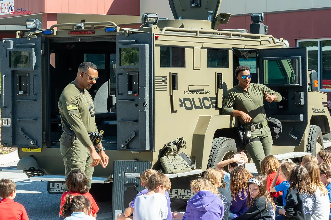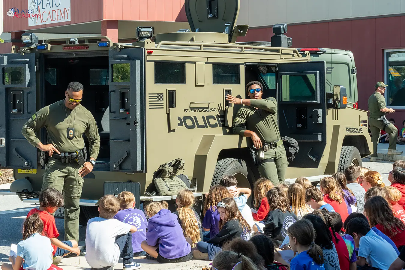 Plato Academy has made community connection a cornerstone of the school experience, and First Responders’ Day is one of its clearest expressions. For the officers who showed up, it was a chance to talk with the students in a more relaxed setting. For the students, it was an opportunity to ask real questions and get real answers from the people who are on the front line.