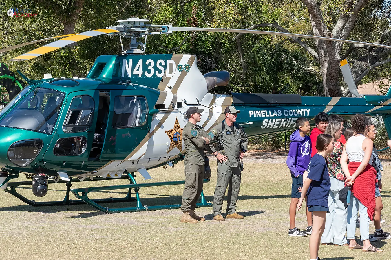 Helicopter Crew. The aviation unit drew some of the loudest reactions of the day. The crew walked students through how aerial units support ground operations, from search and rescue to suspect tracking, offering a perspective on law enforcement that most people never consider.