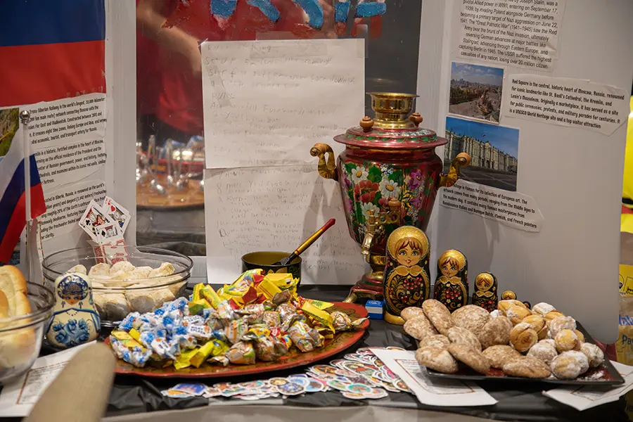 The evening brought together families, students, and community members to explore the cuisines, customs, and traditions of more than a dozen countries, including Australia, Greece, Puerto Rico, Egypt, France, Israel, Cuba, Russia, Portugal, Germany, Vietnam, Venezuela, the United States, Haiti, Ireland and several others. Each booth offered a window into a different part of the world, with information about cultural traditions alongside traditional foods prepared by the families themselves.